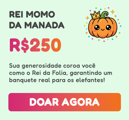 A cada mês, nossos elefantes consomem uma grande quantidade de frutas e legumes frescos, essenciais para sua suplementação e bem-estar. São +/- 5 TONELADAS por mês. Com sua ajuda, podemos garantir que continuem recebendo a alimentação de qualidade que merecem. Nossa meta é arrecadar R$50.000 para cobrir os custos de um mês de frutas e vegetais para as nossas 5 elefantas.