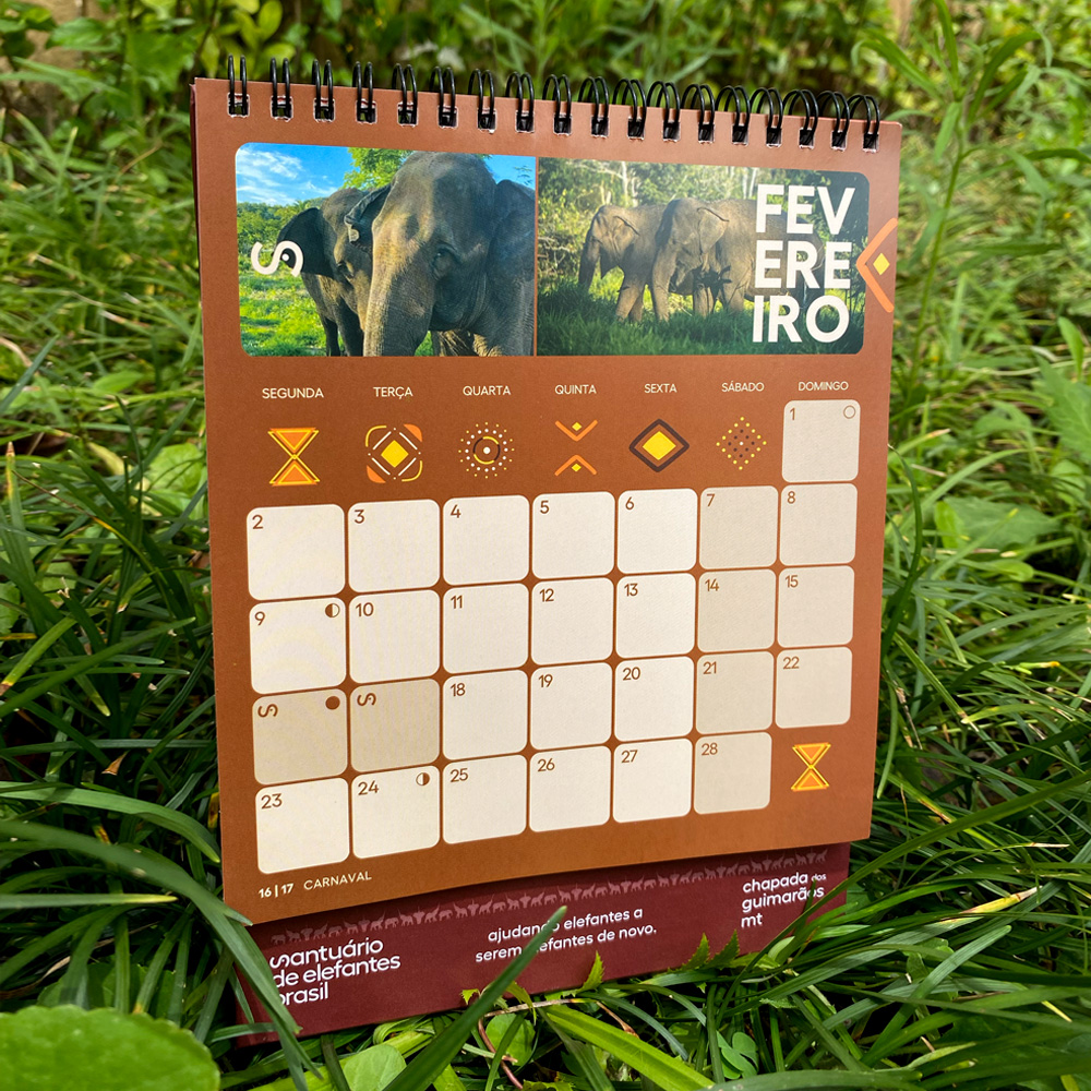 O calendário de mesa 2026 representa a conexão entre organização diária e propósito. Enquanto você acompanha os meses, marca datas importantes e planeja seus compromissos, também contribui diretamente para transformar a vida de elefantes que passaram décadas em cativeiro inadequado e agora desfrutam de cuidados apropriados no maior santuário de elefantes da América Latina.
