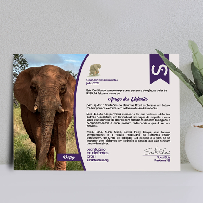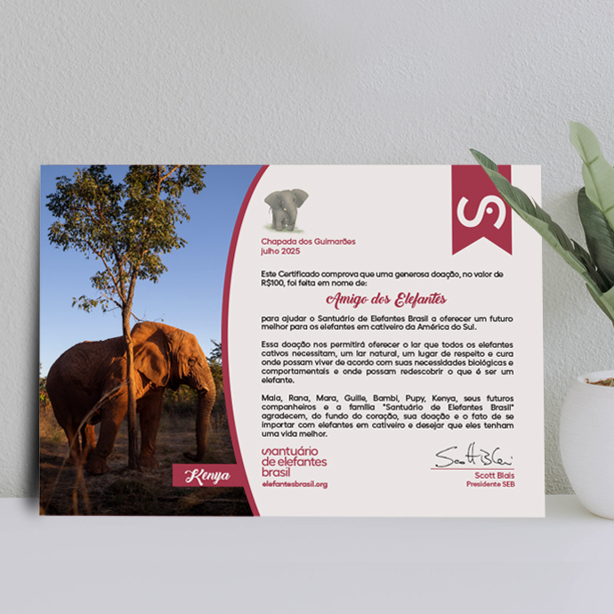 Certificado de Doação com a foto do seu elefante preferido